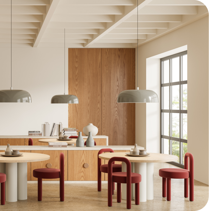 Dzięki holistycznemu podejściu do projektowania uwzględniamy nie tylko techniczne aspekty akustyki, ale także szerszy wpływ otoczenia na człowieka. Nasze projekty zapewniają komfort akustyczny, estetykę przestrzeni, odpowiednie oświetlenie oraz ergonomię – wszystko to, by stworzyć środowisko sprzyjające relaksowi, koncentracji i dobremu samopoczuciu.